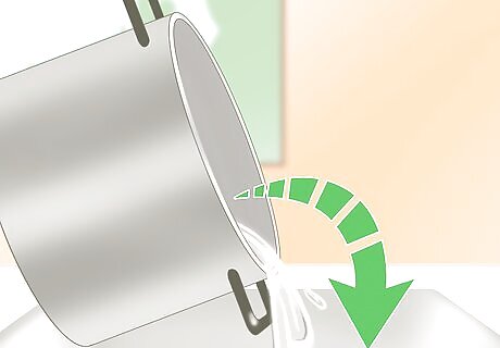 Pour off the excess liquid. When you remove the solution the next day, pour off the excess liquid immediately. Be careful not to upset any crystals that have formed. If you allow the crystals to remain in the water, they will redissolve as the water heats up.