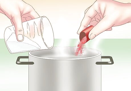 Add Epsom salt to the water. In a big bowl, add the Epsom salt in a 1:1 ratio to the water. This means that for 1 cup (240 mL) of water, you will add 1 cup (240 mL) of Epsom salt. This will allow the solution to become fully saturated. You will notice that a small amount of Epsom salt remains in the bottom of the container undissolved. Epsom salts will not react with traditional pots or stir sticks in any meaningful way.