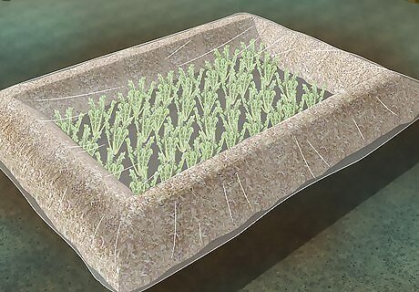 Use cloches to shelter greens and brassicas as an alternative to a frame. Cloches are plastic covers that can be placed over plants. You can cover small vegetables with store-bought cloches, or you can make your own for larger garden beds. To make your own cloches, surround your vegetables with posts and slide a plastic garbage bag over them.