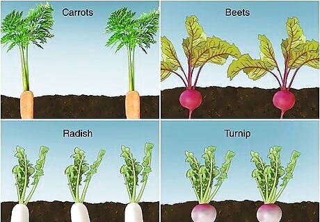 Plant root vegetables to harvest throughout winter. Like leafy greens, root vegetables are able to withstand winter weather conditions with enough protection. Plant root vegetables directly in the ground in late summer or early fall for a winter harvest. Some roots vegetables you can add to your winter garden are: Carrots Beets Radishes Turnips Parsnips