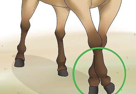 Watch your horse’s gait. The biggest indicator of equine wobblers syndrome is your horse’s gait. Wobblers typically manifests through a wobbling or stumbling motion, making it look almost as if your horse was sedated. Their gait may also be uneven or exaggerated. Gait problems due to wobblers may be made worse with exercise, but often appear even when your horse is not training. The gait issues can be subtle. For example, you may see “intermittent or shifting lameness” or a lameness that can be pinned to one leg. Additionally, the horse may have trouble picking up and changing leads or may fail to stop smoothly. Other symptoms may include excessive tail movements while exercising, an abnormal stance, a stiff neck, and kicking or fighting behavior due to pain.