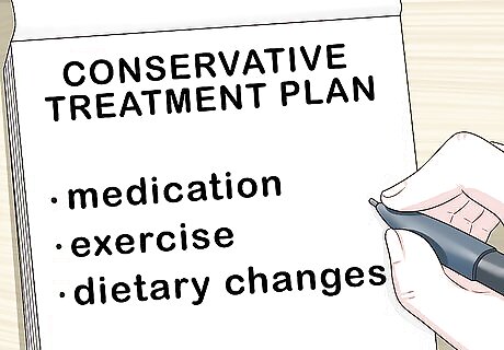 Develop a conservative treatment plan. In some cases when wobblers is detected early, a conservative management plan involving medication, exercise, and dietary changes can help your horse. This option is often helpful, but it does not guarantee complete recovery, and will often cost thousands to tens of thousands of dollars a year, depending on the specific plan. Ask your vet if conservative management is right for your horse. If it is, talk to them about the best options for your horse regarding: Anti-inflammatory drugs and therapy. A modified exercise and training program or an early pasture retirement. Proper nutrition to support your horse’s new health needs. Supportive care including acupuncture, water walking, and physiotherapy.