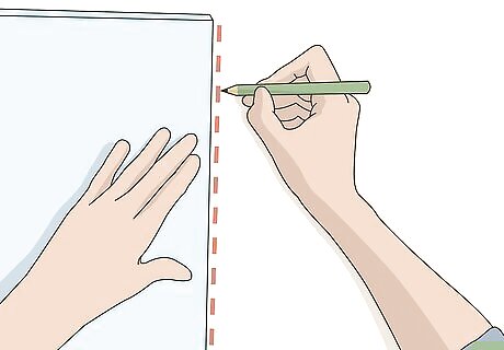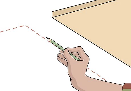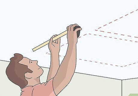 Use a pencil to mark the ceiling on the sides of the panel. While you’re holding the cloud against the ceiling with 1 hand, use a pencil to mark the ceiling at the center of 1 of the long sides of the cloud panel. Then, mark the ceiling on the other side of the panel directly across from the first mark. If your acoustic clouds are square or rounded, choose 1 side to mark the center, then mark the center of the side across from it.