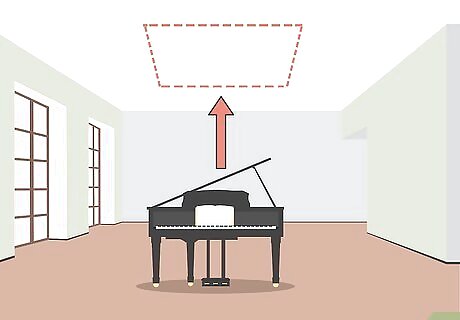 Place the clouds above the areas that produce the most noise. If the room receives a roughly equal amount of noise throughout, then the ceiling above the middle of the room is the best location to absorb the most sound waves to reduce noise and reverberation. If there’s an area that produces much more noise, such as a bar or seating area, choose above that location to place your clouds. For example, if you have a piano or a drumset in the room, placing the acoustic clouds above them will help reduce reflected sound. Placing the acoustic clouds in a corner or against a wall will make them less effective.Tip: If you’re hanging multiple panels, place them above the areas that will produce noise, such as a speaker or stage, as well as above the seating area or the area where people are likely to be talking so the 2 sounds don’t overpower each other. You can hang as many panels as you like to reduce the overall noise in the room.