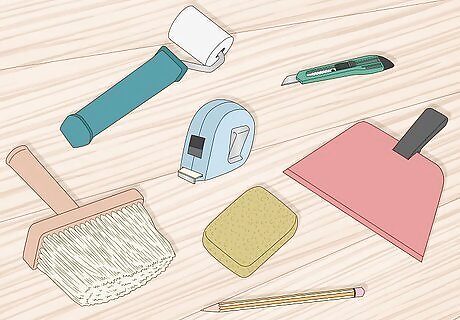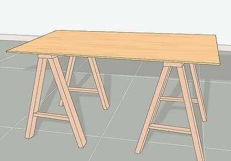 Ask if you can rent a basswood table from the wall covering shop. To make your own, rest a three by six-foot (0.9m by 1.5m) piece of three-fourths inch (1.9cm) plywood on top of two sawhorses. Sand the corners of the plywood to avoid tearing. Basswood and plywood are like a self-healing mat, allowing you to cut into the surface of the paper with a utility knife without ruining the paper.
