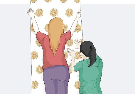 Ask someone to help you hang wallpaper for the best results. Large pieces can be slightly unwieldy.