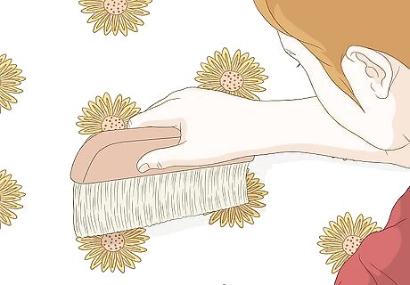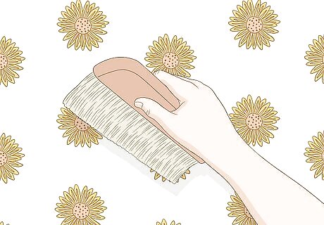 Use a wallpaper smoothing brush or tool to remove bubbles. Brush the bubbles out toward the sides. Repeat until the wallpaper is smoothed to the wall.