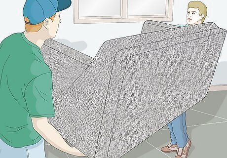 Remove all furniture from the room, or as much furniture as you can. Cover the floor in drop cloths. The water and paste can drip off the table and onto floors.