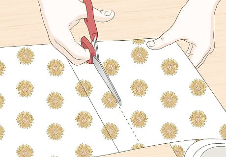 Take a vertical strip of wallpaper. Cut it to the length of your wall, adding four inches (10cm) of extra space, or two for the top and two for the bottom.