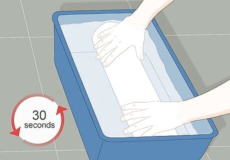 Submerge the roll of wallpaper in the water tray. Soak it for about 30 seconds, or the time recommended by the manufacturer.