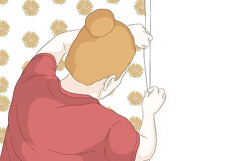 Mark the plumb line before you hang sections of wallpaper. You should make a mark every six inches (15cm) or so, to ensure you hang a sheet to be completely level. Don’t trust ceilings, floors, trim or windows, since many of them are hung without being perfectly level. You will want to start hanging your wallpaper in the least conspicuous area of the room.