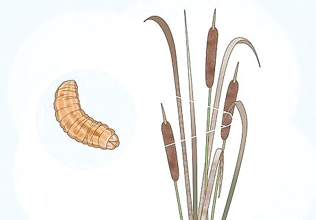 Inspect the brown leaf and the beetle grub. Look for a leaf that is slightly brown where it meets the stalk. Often, you will find the beetle grub hiding inside this leaf. You can use it as bait for fishing.