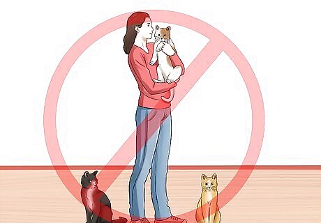 Avoid owning too many cats. One of the simplest ways of avoiding looking like a cat lady is to simply not own that many cats. Limit yourself to one or two cats and make sure you can easily provide for the both of them. Two cats is a great number to own. The cats will keep one another company when you are away from the house, dampening any guilt you may feel for leaving them alone. Too many cats running around the house tends to increase the chance of behavioral problems in the cats, such as fighting, spraying, or otherwise damaging the environment.