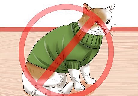 Don’t dress your cats in clothing or costumes (optional). Animals with little sweaters or costumes, though cute, may just indicate a skewed sense of priorities regarding your pet. Feel free to spruce up your pet for Halloween or other fun occasions, but regularly spending money on clothing for your cat is excessive. The exception to this rule is when directed by your vet, such as providing a blanket coat or an Elizabethan collar to stop scratching or biting. These are medical aids, not fashion accessories.