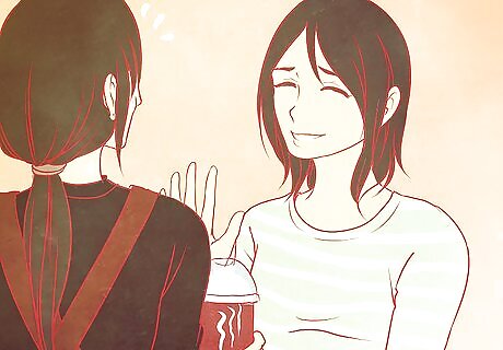 Be friendly. Coffee shops are renowned as a place for building friendships and it all starts with an amiable smile or benign greeting. You don't have to be totally gregarious, however, a modest acknowledgement goes a long way. Good baristas often initiate short-lived conversations while brewing your coffee, so don't be rude—have a chat!