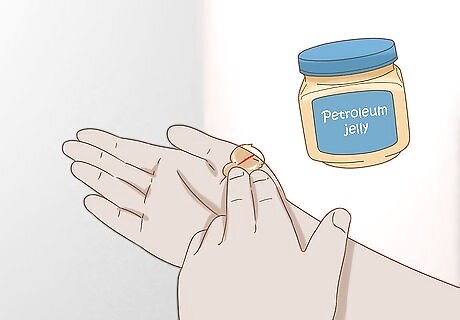 Put some petroleum jelly on the cut. Petroleum jelly will help keep the wound moist and promote faster healing. The extra moisture will also help minimize any scarring. As another option, you can put an antibiotic ointment, such as Neosporin, on your wound. However, petroleum jelly may be just as effective at helping the wound heal. If the wound is allowed to dry out, it will form a protective scab. Wounds that scab over may take longer to heal. If you keep your wound clean, you probably will not need to use antibiotic ointments to prevent infection.