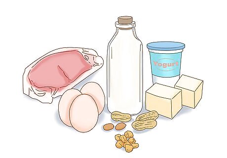 Eat power foods to promote healing. Eating a balanced, nutritious diet can also help your cut heal faster. Try to eat foods that are rich in protein, such as lean meats, eggs, milk, Greek yogurt, nuts, and soy products (like tofu or soy milk). You can also benefit from eating foods rich in certain vitamins and minerals:Tip: If you have diabetes, high cholesterol, or another condition that might affect how quickly your cut heals, talk to your doctor about what to eat to help manage your condition. Get vitamin C from fruits and vegetables, such as citrus fruits, berries, tomatoes, peppers, spinach, broccoli, cauliflower, and cabbage. Eat plenty of vitamin A-rich foods, including leafy green vegetables (such as spinach or mustard greens), orange and yellow vegetables (such as bell peppers or yellow cauliflower), cantaloupe, liver, and some fortified cereals and dairy products. Incorporate good sources of zinc into your diet, such as red meats, seafood, and fortified cereals.