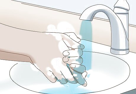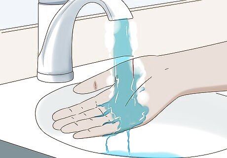 Wash your hands with soap and warm water. As soon as you can, get to a sink and wash your hands for at least 20 seconds. Use some gentle hand soap and water that is as warm as you can comfortably tolerate. When you’re done, dry your hands with a clean towel.Tip: Don’t worry about using antibacterial soap. Regular hand soap is just as effective at removing germs and dirt from your hands, and is also less likely to promote the growth of drug-resistant bacteria! Washing your hands will help prevent you from introducing dirt, bacteria, or other contaminants into the cut.