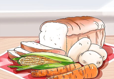 Eat a high-energy diet. The damage to your liver may mean that it isn’t able to store energy efficiently. If this has happened to your liver, you will need to eat extra to make up for what your body isn’t able to store. Eating five to six small meals with healthy snacks may be helpful. Increase your intake of simple carbohydrates by eating fruits and your consumption of complex carbohydrates by eating whole-grain breads, potatoes, corn, peas, parsnips, lentils, beans, and nuts. You can also supplement carbohydrates with a moderate amount of fat. This will provide you with extra energy. If you lost weight while drinking, this may be because your body started breaking down muscle tissue to get the nutrients it needed.