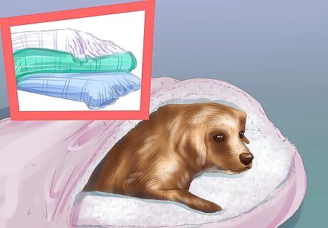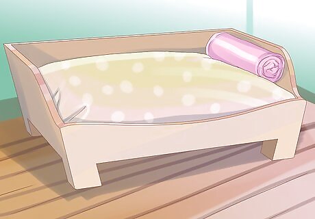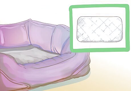 Place clean blankets in the bedding area. Use bedding materials that you are comfortable washing many times, as that is what you will need to do. Every time the blankets are soiled, remove them and wash them with an enzymatic cleaner. This is a cleaner designed to remove odors and waste. Then, replace the soiled linens with fresh ones. You can find pet-specific enzymatic detergents and sprays at most pet stores.