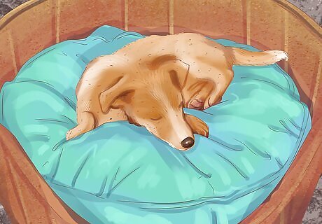 Create a peaceful sleeping environment. Some dogs lose control of their bladders or bowels as a result of extreme emotions, such as excitement or agitation. Place your dog’s bedding in an area that is quiet and dark. It is best if the bed space is out of the way, so that the dog will feel safe sleeping without worrying about being bumped into or jostled. If your dog is showing signs of submission while in bed, such as rolling over, then you may need to rethink the bed’s location. The same goes if your dog is acting agitated while lying in their bed.
