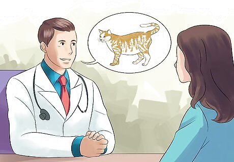 Help stray and feral cats. Most cities and suburbs are home to numerous stray and feral cats. While stray cats are typically domestic pets that escaped or were abandoned, feral cats tend to live their lives entirely as wild animals. There are a number of ways you can help these outdoor cats, from reuniting them with their owners to simply providing them with food and water. Consider leaving some cat food and a bowl of water out for stray and feral cats in your neighborhood. Be aware, though, that leaving out food may lure more cats to your yard, as well as other wild animals looking for food. If you see a collar, it probably has an ID tag on it, which means it is a stray or runaway cat. If you can safely approach the cat, check the ID tag and contact the cat's owner. If you have a carrier and can safely get the cat into the crate, take it to a veterinarian or local shelter. Someone at either facility will be able to scan the cat for a microchip to determine if the cat has a registered owner and find a way to contact the owner. If you cannot safely approach or "catch" the cat, write down a detailed description and contact your local veterinary clinics, animal shelters, and rescue groups. Many people who have lost a pet will leave descriptions of the cat with these facilities in hopes that someone might call in a matching description. Let the facility attendants know where and when you saw the cat, and leave an address or phone number so that they can get back to you if an owner turns up. You can also spread the word about a lost pet on social media networks.
