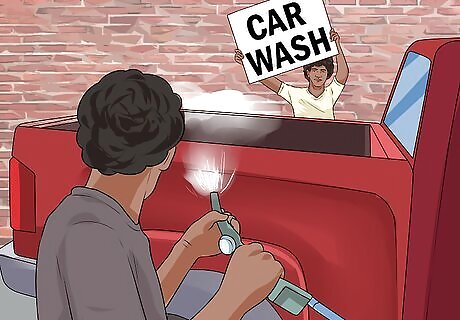 Raise money. If you are interested in raising money for the shelter or rescue group you are supporting, inquire about hosting a third party fundraising event. Whether you want to undertake the fundraiser on your own or collaborate with a local business, call or visit the organization’s website for more information (the Humane Society of Huron Valley in Ann Arbor, MI, for instance, has a fundraising questionnaire on their website to be completed online or printed and mailed). Some good ideas for community fundraising events may include: Bake sales Car washes Fundraising walks or races Golf tournaments