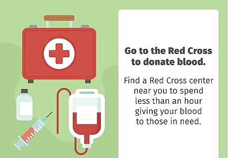 Go to the Red Cross to donate blood. Since so many people are staying home, there is a shortage of donated blood coming in. Find a Red Cross center near you to spend less than an hour giving your blood to those in need. You can find a donation center near you by visiting https://www.redcrossblood.org/give.html/find-drive.