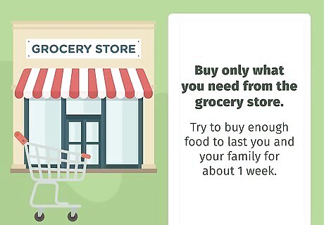 Buy only what you need from the grocery store. Many people can’t afford to stock up on essentials every time they go shopping. When you do your grocery store trips, try to buy enough food to last you and your family for about 1 week. Leaving food and hygiene supplies at the store will help other people in your community get access to it.