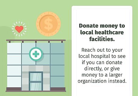 Donate money to local healthcare facilities. If you don’t have any PPE to donate, the next best thing is to give money so healthcare facilities can buy what they need. Reach out to your local hospital to see if you can donate directly, or give money to a larger organization instead. Direct Relief and Americares are 2 charities providing PPE to healthcare workers. You can visit their websites to donate money online.