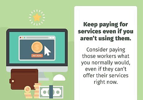 Keep paying for services even if you aren’t using them. Workers who provide babysitting, pet-sitting, elderly care, and other jobs that require human contact are out of work right now. If you can, consider paying those workers what you normally would, even if they can’t offer their services right now. If you can’t afford to continue paying for services, that’s okay too.
