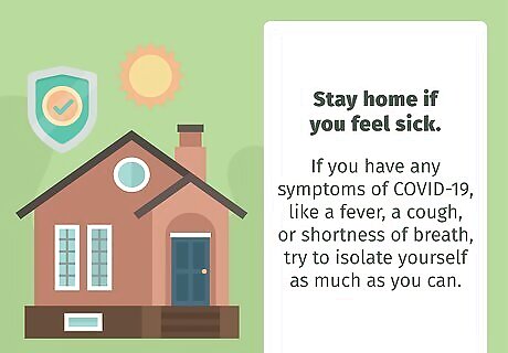 Stay home if you feel sick. If you have any symptoms of COVID-19, like a fever, a cough, or shortness of breath, try to isolate yourself as much as you can. If you do need to leave your home, try to wear a medical-grade N95 mask outside. If you experience any shortness of breath or a tightness in your chest, call emergency services right away. Call your doctor ahead of time before you go in to get tested or treatment. Some hospitals have separate testing centers that they will direct you to if you have symptoms of COVID-19.