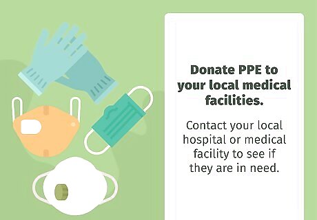Donate PPE to your local medical facilities. If you have any medical-grade N95 masks, goggles, gowns, or gloves, contact your local hospital or medical facility to see if they are in need. You can also contact homeless shelters and nursing homes in your area to see if they need any personal protection equipment.Warning: If you or your family have used any personal protection equipment, do not donate it. Unfortunately, PPE is not reusable.