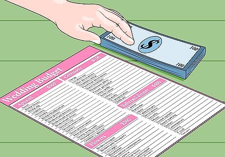 Determine how much you are willing to contribute. Talk with your partner about how much you will be willing to pay for your child’s wedding. Determine if you want to pay for the entire wedding or just a part of it. Work with your partner to find a price that is within your budget and allows you comfortably save money. The tradition of the bride’s parents paying for everything is outdated and less common today. Instead, the bride’s parents, the groom’s parents, and the bride and groom tend to split the wedding expenses. You should create a budget with your partner to ensure that you save enough for the future while meeting your current expenses.