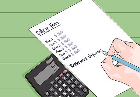 Prioritize college and retirement savings. One important factor to remember when saving for your child’s future wedding is prioritizing saving for your child’s college education and your retirement. Make sure that you are adequately saving for these two things before putting any money into a wedding savings account. If your resources are tight, put off saving for a wedding until you can afford it. Your retirement and your child’s education are much more expensive than a wedding and will require as much money as you can save.