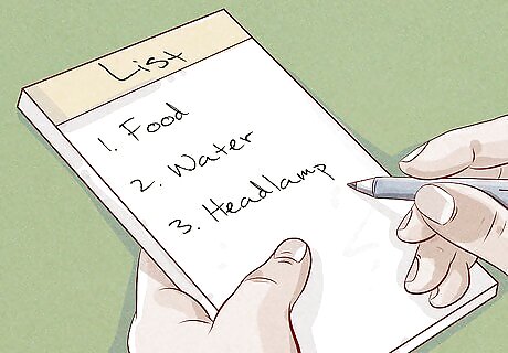 Make a list of what gear you will need. Whether you are planning a day hike, overnight, or week-long hike, it is helpful to make a list of what gear you will need to acquire. You can then use this list to double-check your pack before you embark on your hike. If you are doing a day hike, pack food, water, a water filter, a paper map, a light windbreaker, hiking-appropriate footwear, a GPS emergency beacon, and waste bags. If you’re hiking overnight, pack a headlamp, long underwear, a light windbreaker, hiking-appropriate footwear, extra batteries, a winter hat, gloves, light puffer jacket, food, water, a tent, a sleeping bag, a GPS emergency beacons, a bear canister, and waste bags. Both day and overnight hikers may need boots with snow spikes. You can call the Eastern Sierra Visitor Center to find out how much snow (if any) is on the ground.