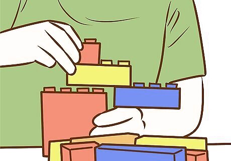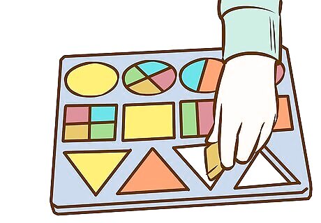 Use colored blocks. Colored blocks are a great way to teach your child cognitive skills, like learning to match shapes. Ask your child to organize the blocks by shape or by color. You can practice by showing your child how to organize the blocks based on shape or color first. Then, ask your child to repeat the process. You can also ask your child to name the shapes as they group them together.