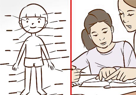 Name animals or parts of the body. By naming animals and parts of the body, you can develop your child's language skills, as well as their science skills. Associate each part of the body or an animal with a specific letter. For example, "L" is for "Leg," and have them point to their leg. Do this for all major body parts, like their nose, mouth, hands, and feet.