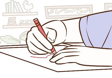 Introduce writing to your child. Your child can begin to respond to books by drawing, then progress to writing. Provide different types of paper and writing surfaces as well as a variety of writing tools. For instance, help your child trace letters of the alphabet in shaving cream on a table, or ask them to copy their name outdoors in sidewalk chalk.