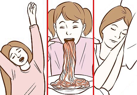 Develop a healthy routine. Developing a routine for your child is fundamental. Routines instill security, structure, and self-discipline in your child. Create a schedule for your child. The schedule should outline times for waking up, eating, learning, napping, playing, and sleeping. You can also include things you need to accomplish like chores, prepping for meals, and cleaning. You should dedicate at least 30 minutes to each of these activities. For example, 30 minutes for making breakfast, 30 minutes for eating, and 30 minutes for learning. Of course, adjust the schedule to your and your child's needs. It may take longer to prep a meal, for example. Be sure to schedule times for daily reading. These times can be in the morning when your child first wakes up, or at night before bedtime.