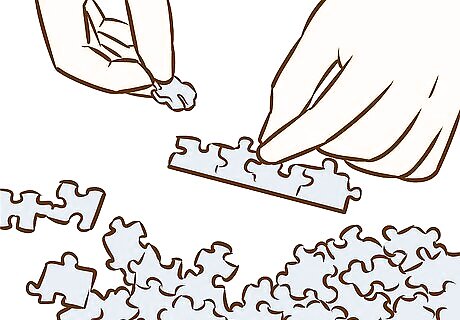 Do puzzles together. Cognitive development skills are important skills to master. These skills include learning and problem solving. Puzzles are a great way to teach your child problem solving skills. Buy an age-appropriate puzzle and help your child figure out how the pieces fit together. As you put the puzzle together, talk to your child about what you see. For example, "This is a pig. Where will the pig fit in the puzzle?"