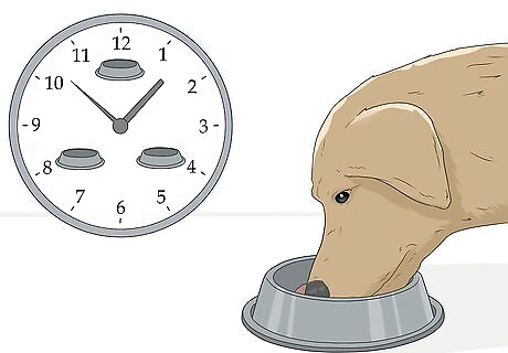 Put your dog on a feeding schedule. Feed your dog at the same time in the morning and at night, then wait 20 to 30 minutes before taking him outside. Having a feeding schedule will make it easier to predict when your dog will have to go to the bathroom, making housetraining easier. Puppies need to be fed three times a day. If you have a puppy, schedule a regular lunchtime feeding as well. Again, a puppy should be given more opportunities to go outside, since it has a smaller bladder.