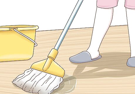 Clean up messes right away. If your dog makes a mess in the house (and they definitely will), clean it up right away and use a cleaning solution to get rid of the scent. If your dog smells an old mess in a certain spot, they’ll think of that as a bathroom spot. Do not punish the dog for making a mess. Just clean it up and stick to the schedule.