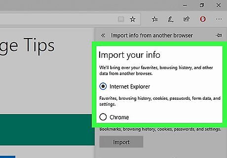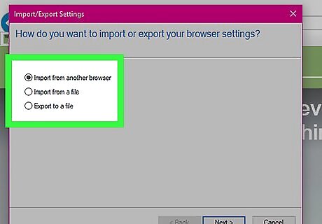Select either the Import from another browser option or Import file or Export file options. then click theNext button to continue. What you select next will depend on what option you clicked.