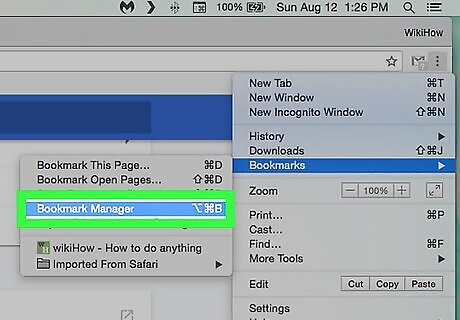 View the Chrome Menu button (triple beam bar) and click the Bookmarks option then click the "Bookmarks Menu" sub-option from each of these drop-downs. The menu button can be found in the upper right corner of the screen.