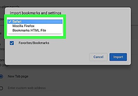 Select the browser you'd like to import your bookmarks from, from the "From" drop-down box, or, if your browser isn't listed select the "Bookmarks HTML File". Currently, you're only able to import them from Internet Explorer (and thereby Edge too) as well as Mozilla Firefox.