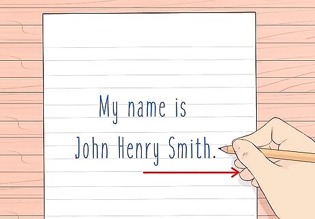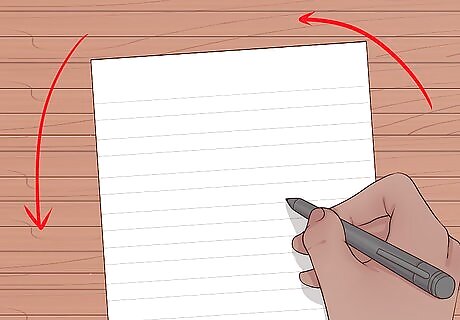 Turn the paper to the correct angle. You don't write on a piece of paper head on. You usually tilt it. Your child may not realize he needs to tilt his paper before he writes to accommodate the angle of his wrist. The angle can help improve his handwriting, as it makes it easier to form letters. Show him how to tilt the paper 45 degrees to the right if he's right-handed. If he's left-handed, tilt it to the left 45 degrees.