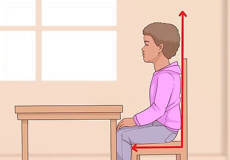 Pay attention to posture. Posture can affect how well your child writes. For instance, if he's sprawled out on the floor, his writing probably won't be as good than when he's sitting at a table. Kids should sit up straight, with their back all the way to the back of the chair. Feet should be flat on the floor with knees at a 90-degree angle. If his feet don't reach the floor, you can stack up telephone books underneath so he has something to rest on. Make sure that the child isn't hunched over, and that their legs aren't crossed.
