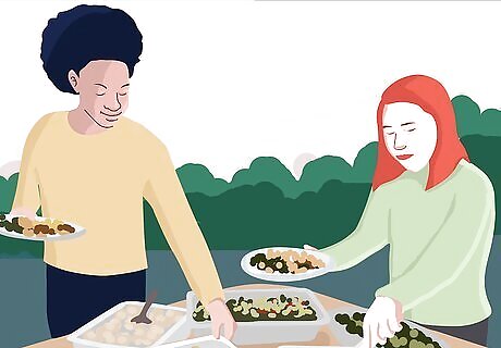 Host a lunch or happy hour so people can get to know each other. Your team will feel more comfortable talking to each other if they know each other well. Invite team members to participate in casual social activities. During this time, focus on having a good time and learning more about each other. If you’re a team leader, schedule a lunch meeting or potluck event for the team. If you’re a team member, invite your teammates to a happy hour or shared coffee break.Tip: Do your best to not exclude anyone in social activities. If one person feels left out, it may make them shut down your communication.