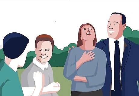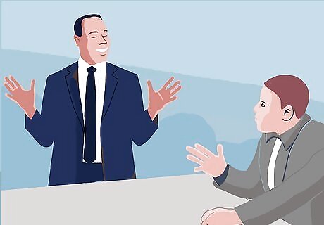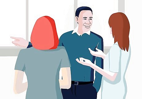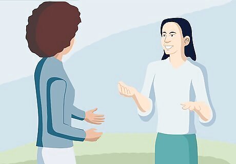Use open body language so you seem approachable. Your body language can be a deterrent or encouragement for communication. Practice open body language by keeping your arms at your sides. Additionally, make eye contact, smile, and stand up straight. Open body language also shows the person you’re talking to that you believe in your message, as it makes you appear more confident and self-assured.